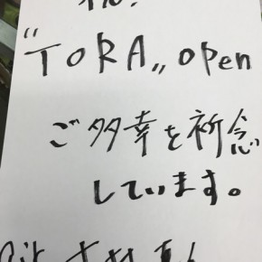 友人の店が明日オープンです。 「TORA」 なんかいいネーミングですね。らしいです。 (サロンホームページ) (友人のエザキヨシタカ氏) んで開店祝いなどもリサーチしてまして… 祝辞など手書きで。 ここで悲劇が (代理で […]